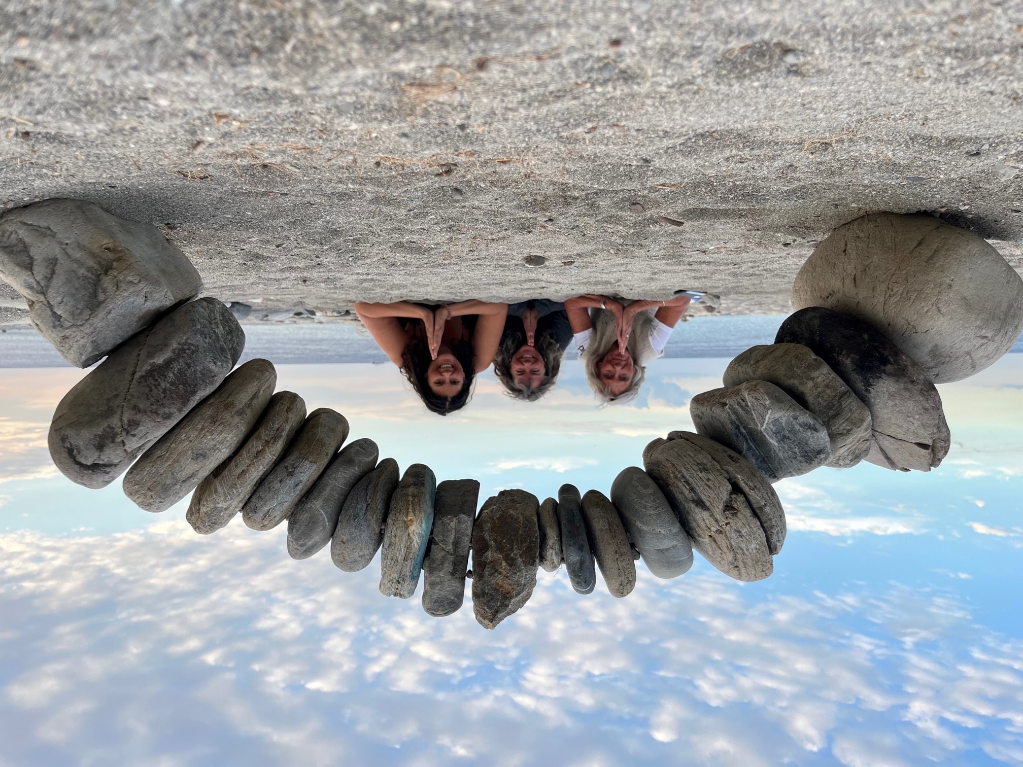 vi har fundet det bedste sted, hvor vi kan dyrke yoga helt nede i vandkanten på en 1,2 km lang super egnet strand, der består af runde sten, perfekt som underlag.